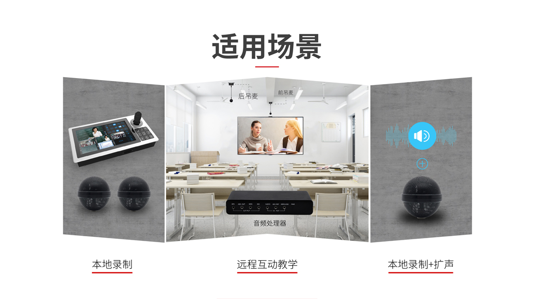 會議系統-M390是針對教室、會議室等場景設計的球型吊裝麥克風和數字音頻處理器,適于常態化錄播、互動教學、數字法庭、監獄會見、智慧黨建、遠程會診等應用。